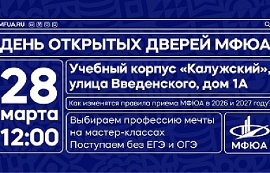 Почувствуйте себя студентом МФЮА! Познакомьтесь с руководством и преподавателями, посетите экскурсию по учебным лабораториям, узнайте, насколько разнообразен актив для студентов вне занятий. Ждём вас всей семьей!